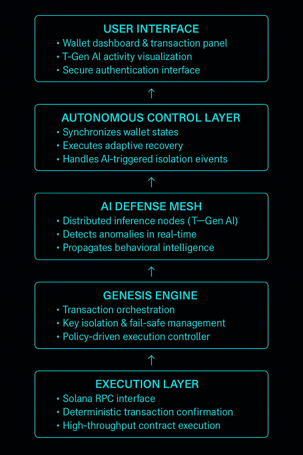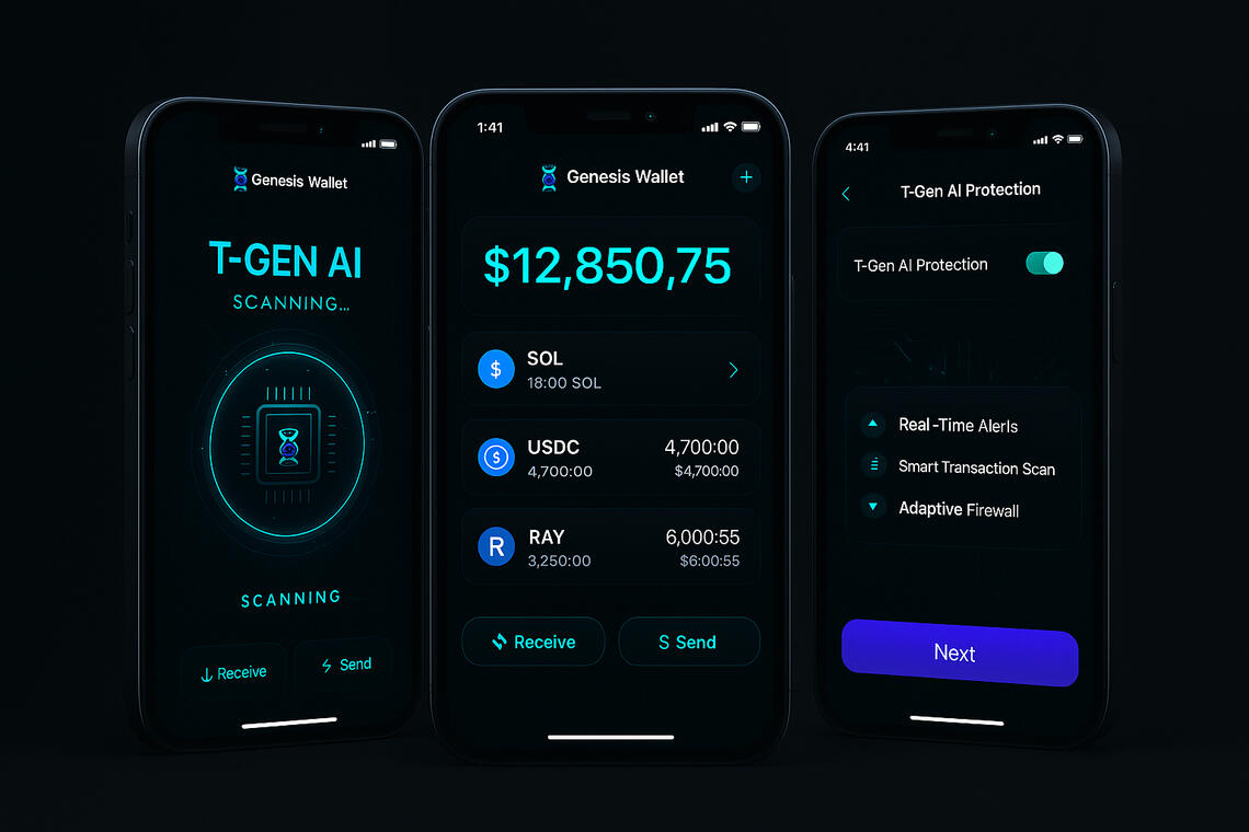 Genesis Wallet is a next-generation Solana-based intelligence wallet that unites blockchain speed with autonomous AI defense. Powered by T-Gen AI, it predicts anomalies, isolates threats, and self-recovers from compromise — redefining what “secure” means in the Web3 ecosystem.