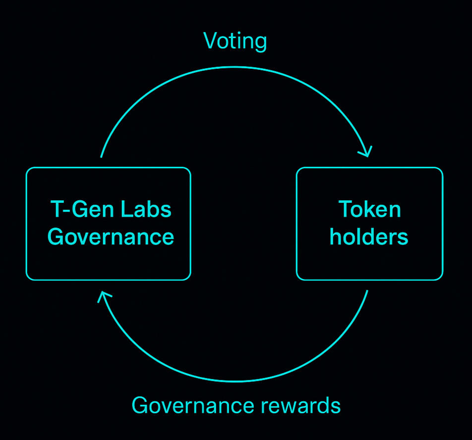 Genesis Protocol Governance empowers token holders to propose and vote on network parameters, emission schedules, and AI model updates. Proposals are executed through smart-vested contracts ensuring full transparency and immutability.